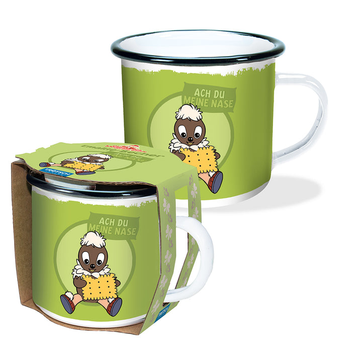 Ob im Kindergarten, beim Campen oder beim Picknick, mit dem Emaille-Becher von "Unserem Sandmännchen" sind Sie der absolute Blickfang. Ausgestattet mit einer dekorativen Geschenkverpackung aus Pappe ist der Becher ein tolles Geschenk für alle Sandmann Fans. Mit einem Fassungsvermögen von rund 30 cl hat die Tasse eine gute Größe für einen schönen Kaffee oder Tee. Das besondere Material und die ausgefallene Tassenform machen den Metallbecher zu etwas ganz besonderem.
