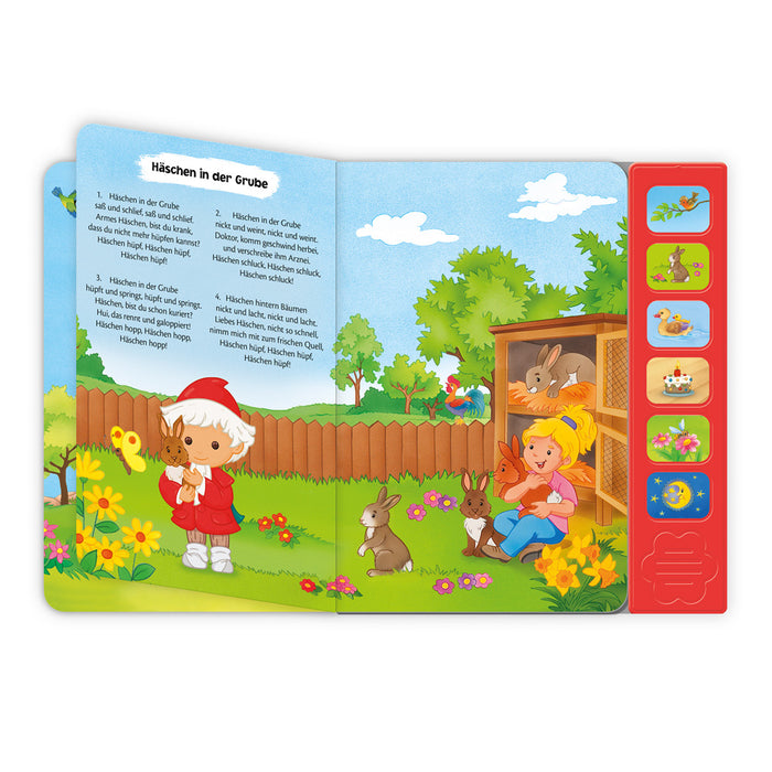 Unser Sandmännchen liebt Musik! Dieses bunte Soundbuch mit den Melodien von 6 bekannten Kinderliedern lädt alle zum Mitsingen ein. Ein toller Spaß für kleine Sänger und Fans von unserem Sandmännchen! „Alle meine Entchen“, „Backe, backe Kuchen“, „Alle Vögel sind schon da“, „Häschen in der Grube“ , "Summ, summ, summ!"und „Ich geh mit meiner Laterne“