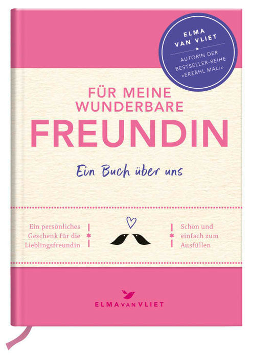 Für meine wunderbare Freundin - Eintragbuch NB - 80 Seiten - Eine persönliche Liebeserklärung an die beste Freundin: Dieses Ausfüllbuch von Bestsellerautorin Elma van Vliet („Erzähl mal!“) ist ein zeitlos schönes Erinnerungsalbum mit inspirierenden Fragen. Ausgefüllt wird es zu einem ein liebevollen Geschenk für einen ganz besonderen Menschen: die Freundin, die mit einem durch dick und dünn geht.