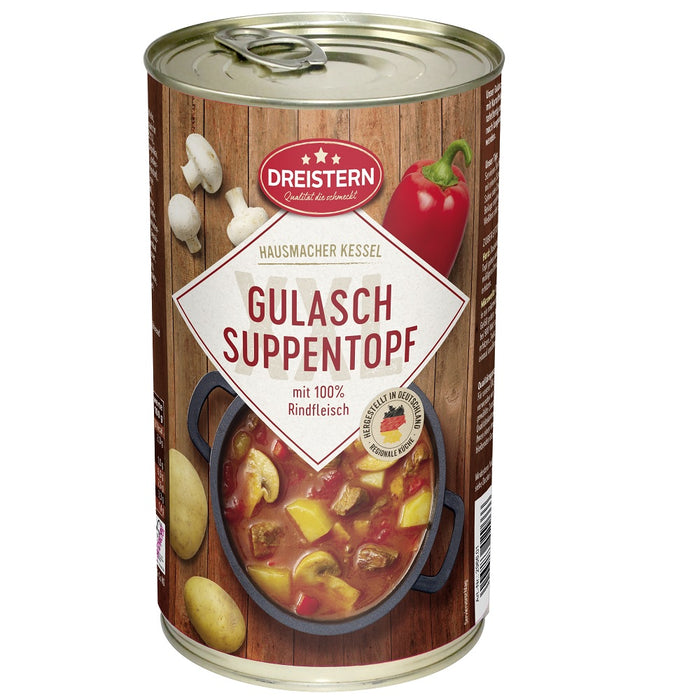 DREISTERN herzhafte Gulaschsuppe 1200g – XXL Fertiggericht mit Rindfleisch & Kartoffeln – Herzhafter Eintopf – Hausmacher Qualität, lange haltbar & schnell zubereitet