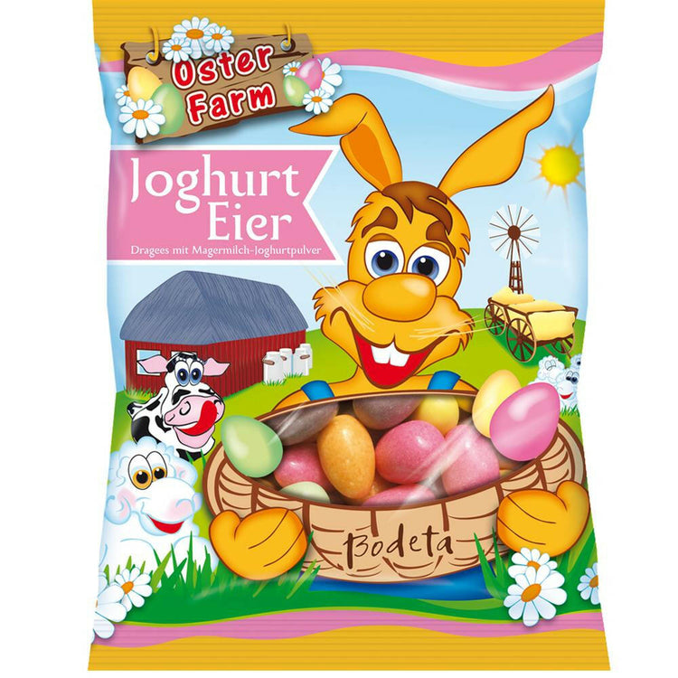 Genießen Sie die köstlichen Joghurteier von Bodeta, umhüllt von einer feinen Drageeschicht. Die Kombination aus zartem Mürbgebäck und cremigem Magermilchjoghurt sorgt für ein einzigartiges Geschmackserlebnis. Perfekt als frühlingshafte Leckerei für den Ostertisch oder zum Verschenken!