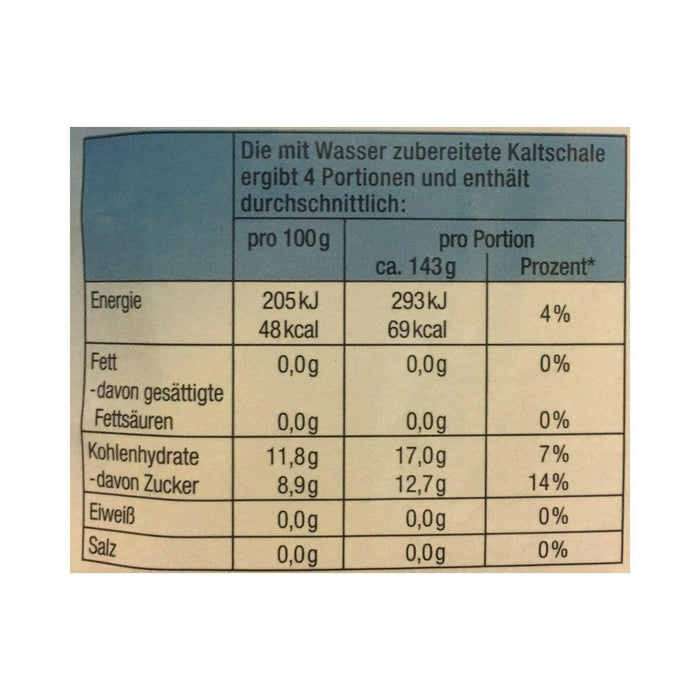 Die Komet Frucht-Kaltschale Erdbeer-Johannisbeer kombiniert die süße Frische von Erdbeeren mit der leichten Säure der Johannisbeere zu einem perfekt abgestimmten Sommergenuss. Ob als Dessert oder kalte Suppe – sie sorgt für eine köstliche Abkühlung. Einfach mit Wasser anrühren, ganz ohne Kochen!