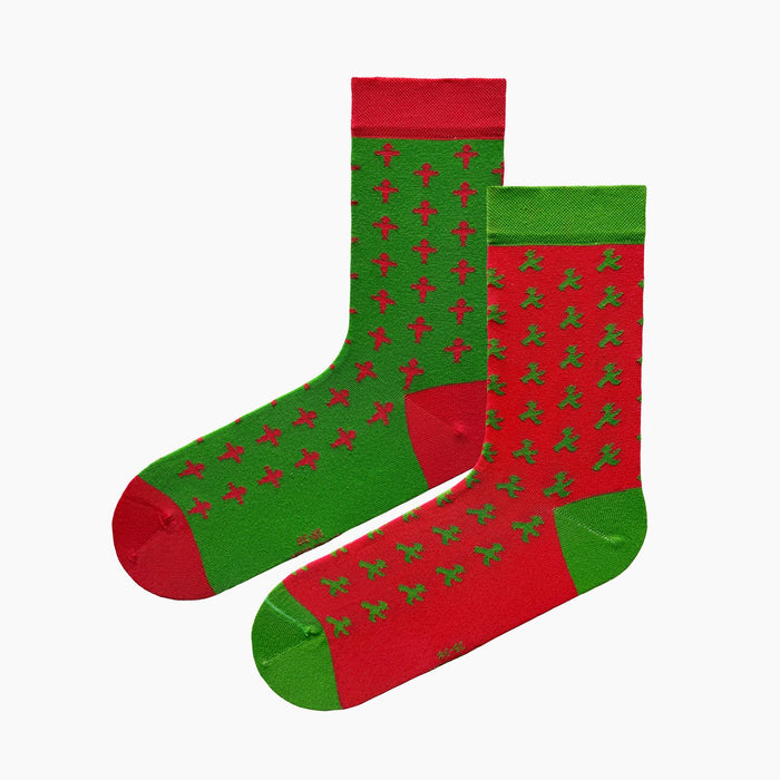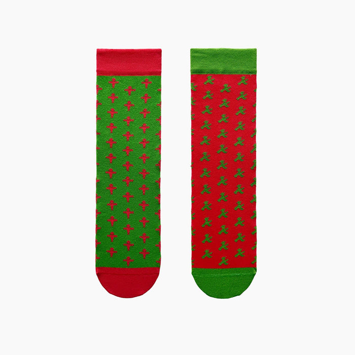 - Farbenfrohes Design: Einzelsocken in Rot mit grünen Ampelmännern & Grün mit roten Ampelmännern