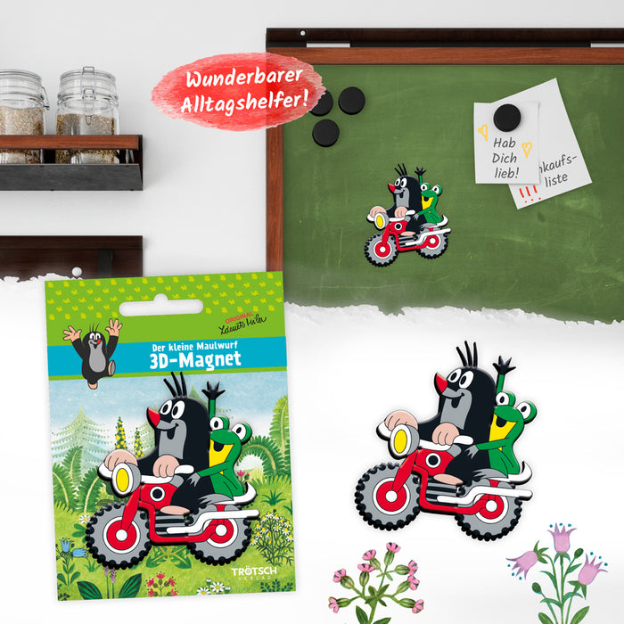 Der kleine Maulwurf und sein Freund der Frosch machen eine Rundfahrt mit dem Motorrad. Der hübsche Magnet in 3D-Optik ist ideal für Kühlschränke, Magnettafeln und andere Gegenstände. Für kleine und große Maulwurf-Fans!