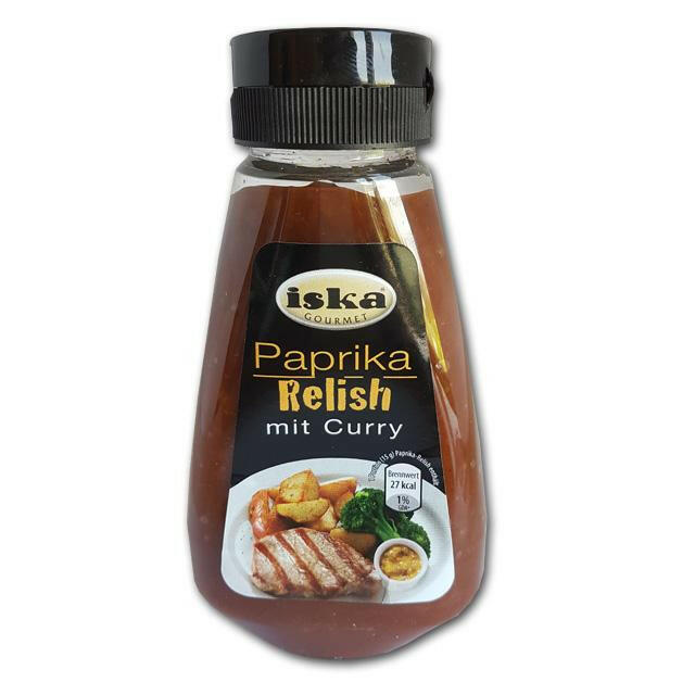 Zutaten:Paprika (53%), Zucker, Wasser, modifizierte Stärke, Branntweinessig, Salz, Curry (1%),Senfsaat, Paprikapulver, Säurungsmittel Citronensäure, Konservierungsstoff E202, Aromen.