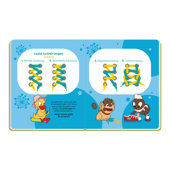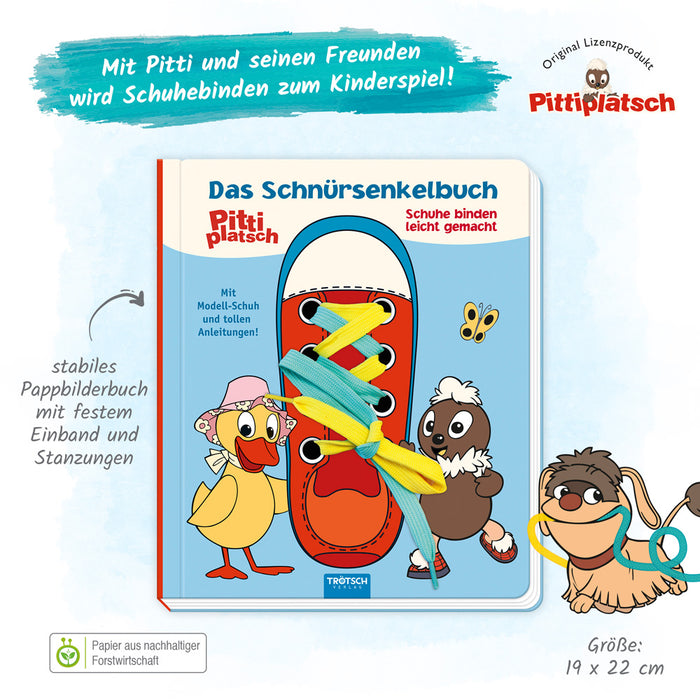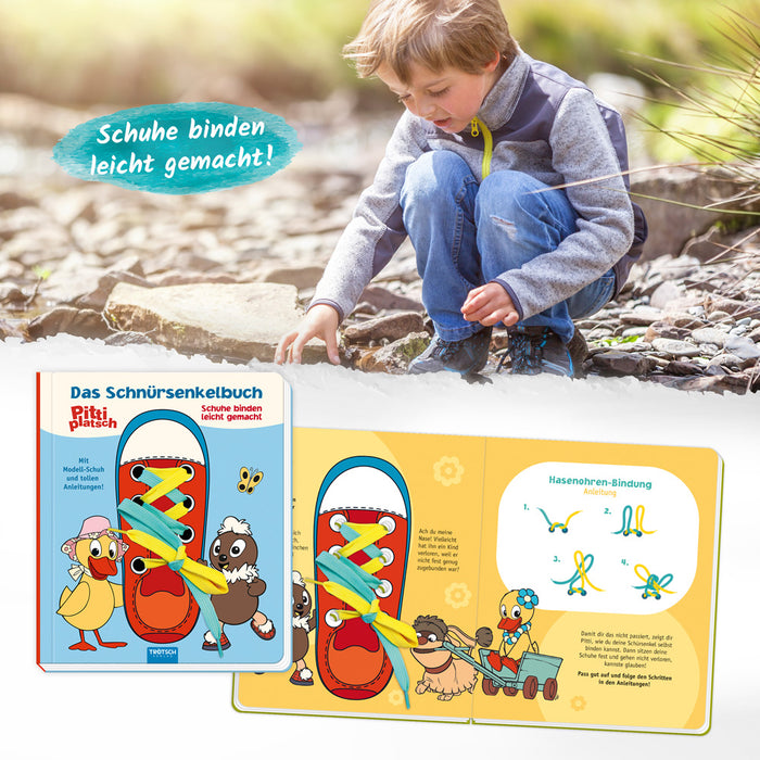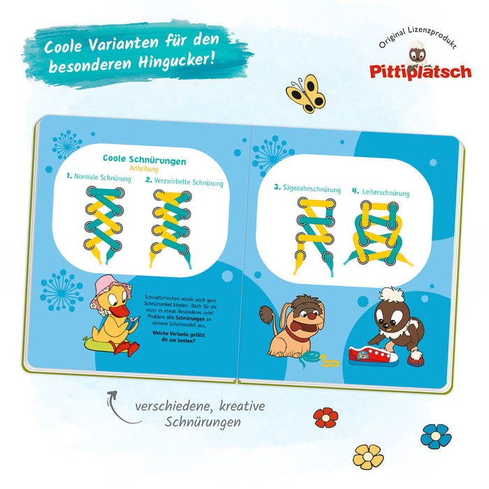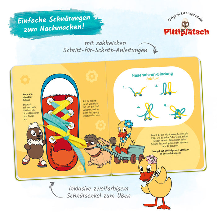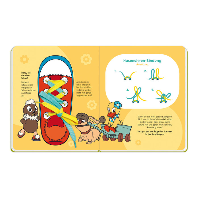 In diesem bunten Pappbilderbuch zeigen Pittiplatsch und seine Freunde verschiedene Möglichkeiten, sich die Schnürsenkel zu binden. So lernen Kinder spielend leicht, ihre Schuhe selbst zu binden. Ideal für den Kindergarten und die Vorschule. Mit praktischem Pappschuh zum Basteln und echten Schnürsenkeln für ein spielerisches Lernen!