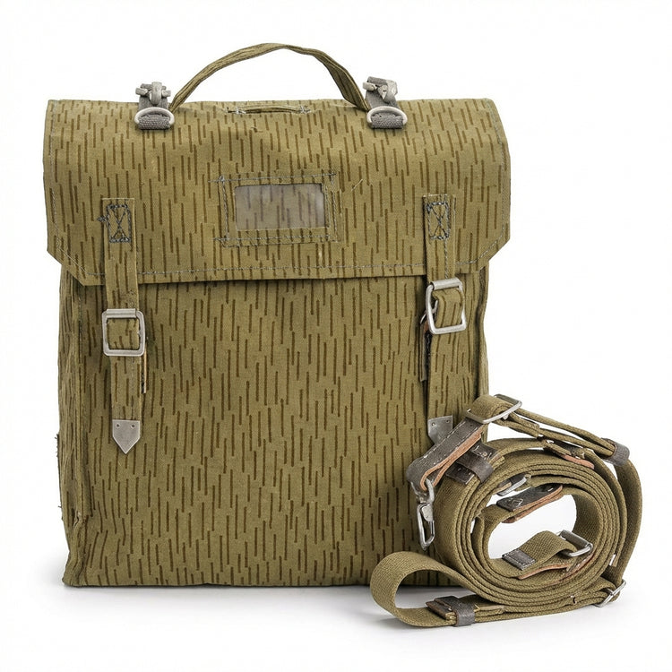 Ein echtes Stück DDR-Militärgeschichte: Diese originale NVA-Tragetasche im klassischen Tarnmuster „Ein Strich kein Strich“ wurde einst für das Sturmgepäck der Nationalen Volksarmee gefertigt. Sie stammt aus Restbeständen und wurde nie getragen oder genutzt – ideal für Deko-Zwecke, Sammler oder nostalgische Fans.