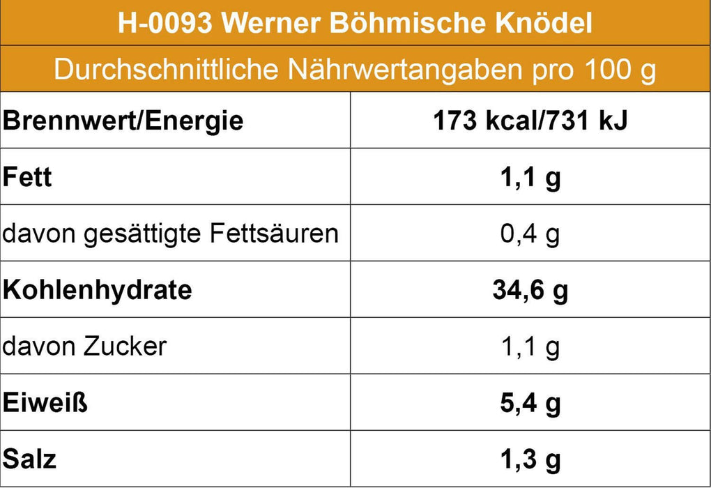 Diese Böhmischen Knödel sind ohne Konservierungs- und Farbstoffe und ohne Geschmacksverstärker.