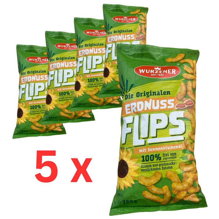 5x 180g Wurzener Erdnuß-Flips große Tüte - die Originalen - vegan & 100% natürliche Zutaten, 5er Pack