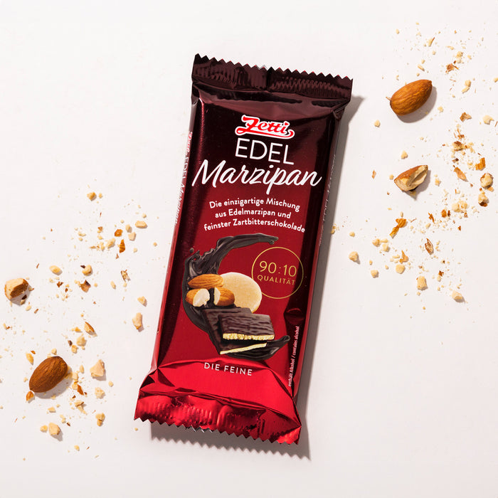 Genießen Sie die Zetti Edel Marzipan Tafel – ein Meisterwerk aus feinstem Edel Marzipan und zartbitterer Schokolade! Diese Tafel besteht aus hochwertigem 90/10er Marzipan, das durch seine köstliche Mandelnote besticht und von edler Zartbitterschokolade umhüllt wird. Ein erlesener Genuss für alle Marzipanliebhaber und perfekt für besondere Genussmomente.